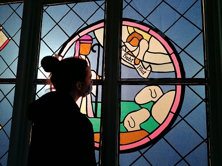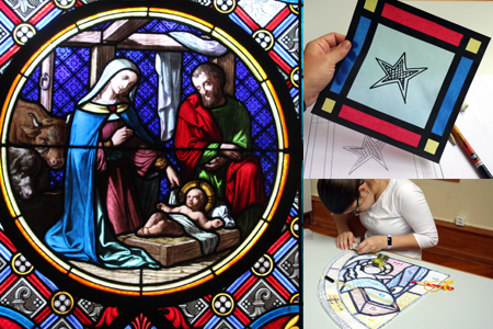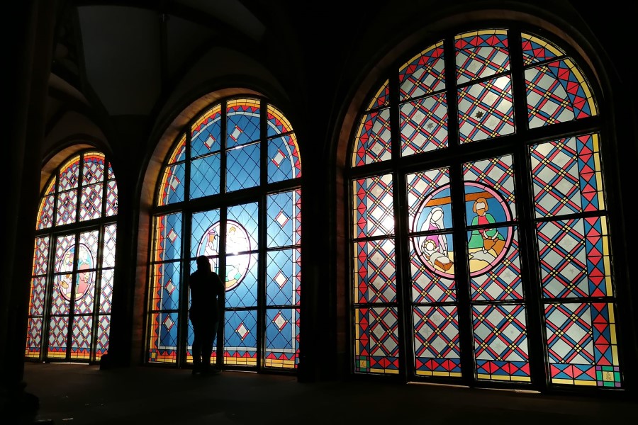 «Unsere Kirchenfenster» mit Motiven der Weihnachtsgeschichte strahlten im Kreuzgang für alle vom 1. Advent 2020 bis zum Dreikönigstag am 6. Januar 2021.